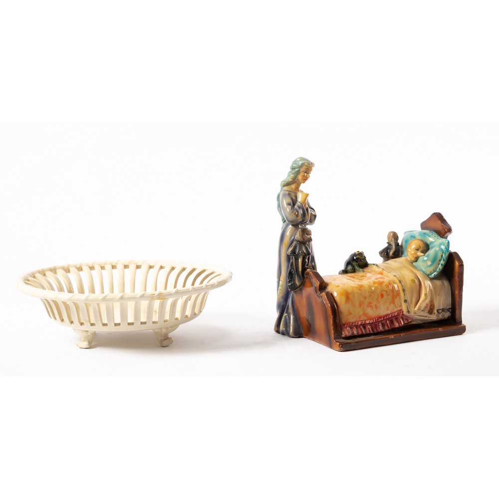 Centrotavola in ceramica Nove smaltata e scultura in schiuma di gesso raffigurante "Pinocchio che dorme".