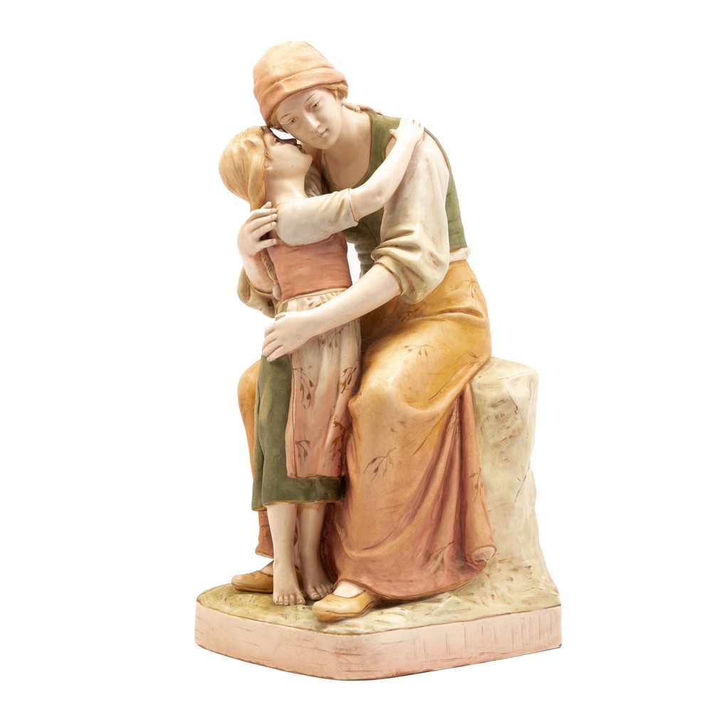 SCULTURA ROYAL DUX in biscuit raffigurante “Figura femminile con fanciulla”.