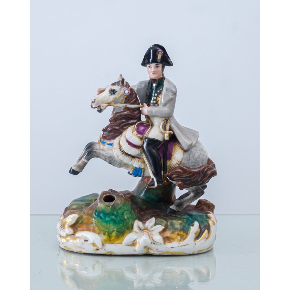 Napoleone a cavallo, calamaio in porcellana policroma con decorazioni ad oro zecchino (rottura ad una gamba del cavallo).