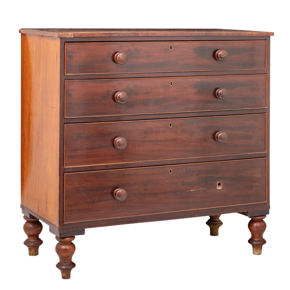 Cassettone in legno di mogano a quattro cassetti, periodo Vittoriano.