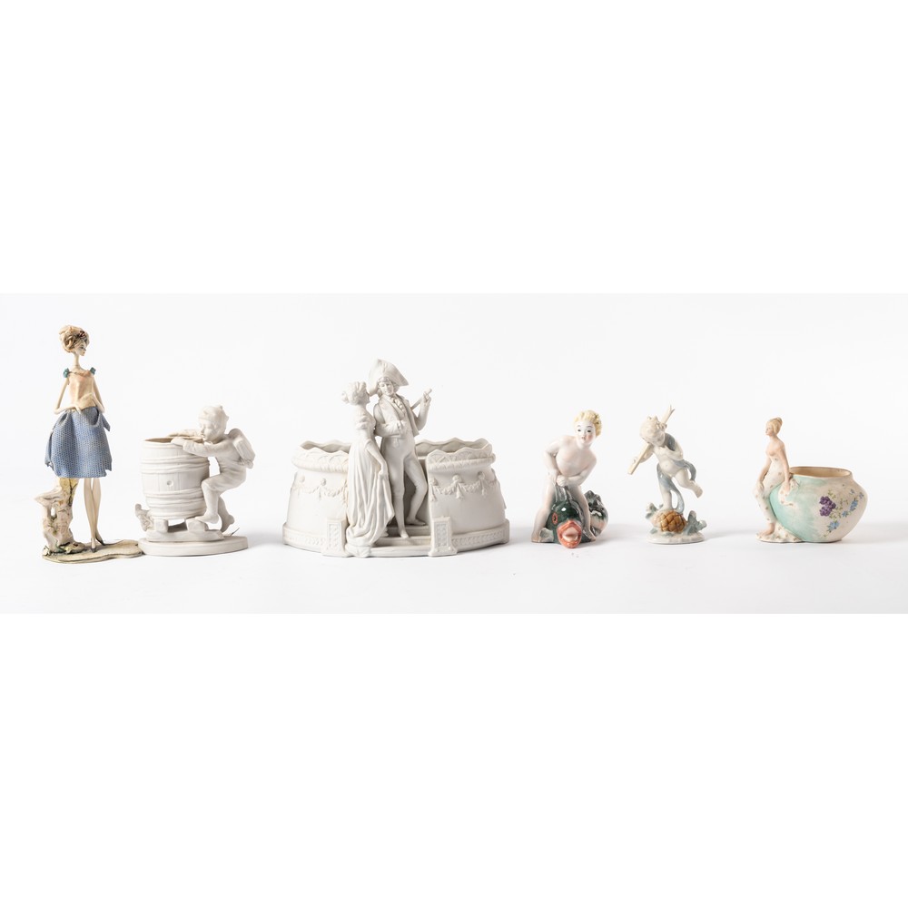 SEI PICCOLE SCULTURE in biscuit e porcellana (usure, rotture e mancanze).