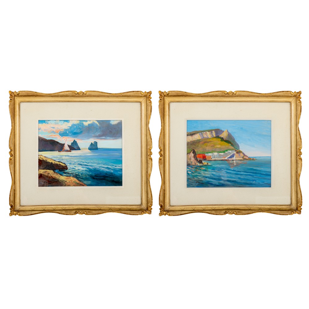 PITTORE DEL XX SECOLO, Paesaggio marino, Due oli su faesite