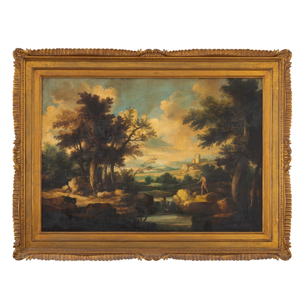 Lotto 460 | ANONIMO DEL XX SECOLO, Paesaggio con pescatore, Olio su tela