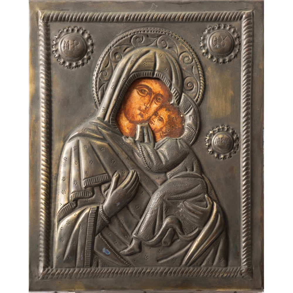 ICONA con riza in argento raffigurante "Madonna con Bambino".