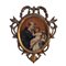 Pittura su vetro ovale entro cornice in legno dorato ad argento a mecca (filè).