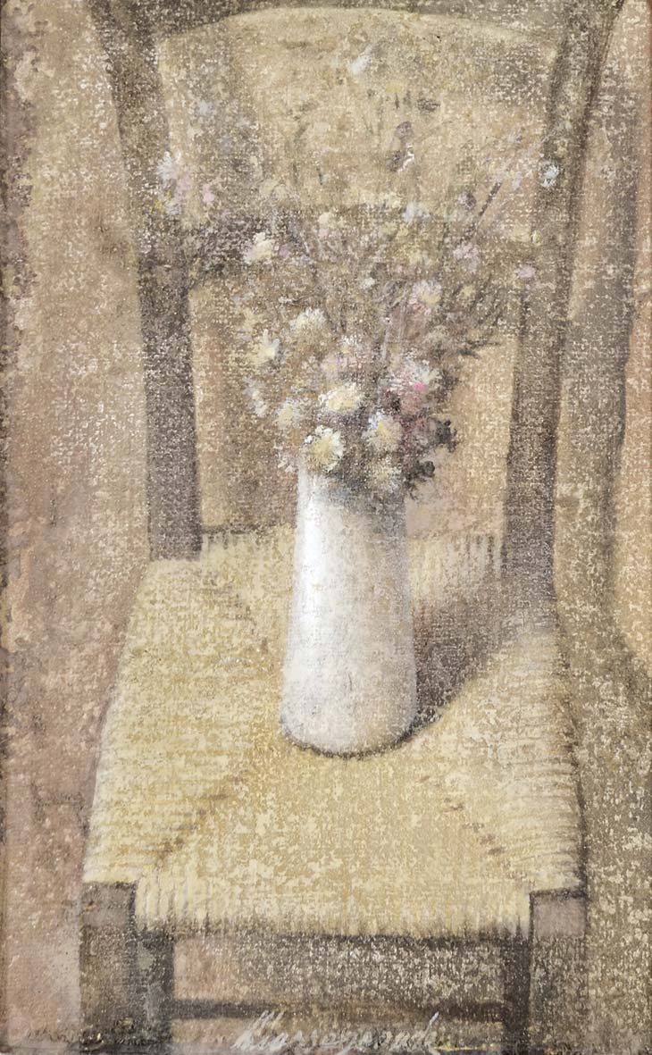 MASSAGRANDE MATTEO Padova 1959 Fiori sulla sedia affresco su tavola 40x25...
