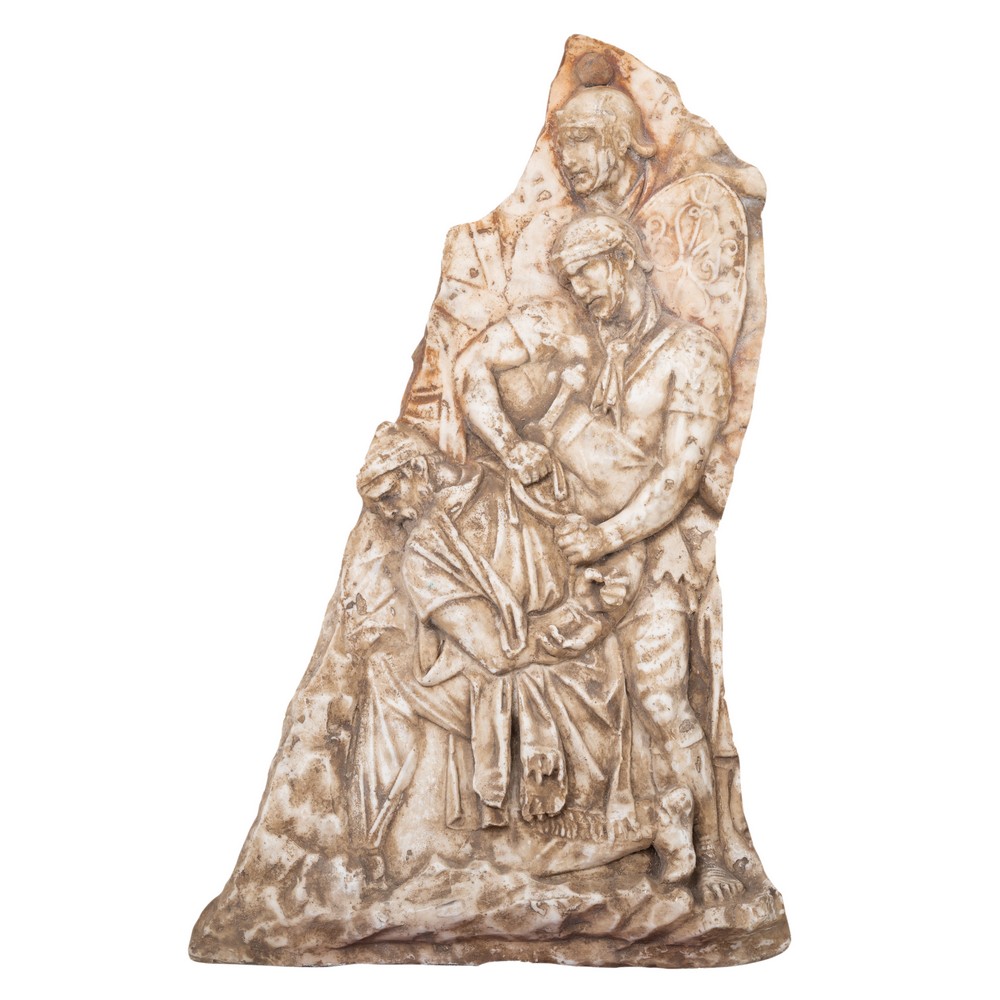 ELEMENTO in polvere di marmo raffigurante "Soldati Romani con prigionieri,