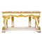Imponente consolle in legno laccato e dorato a oro zecchino, con piano in marmo venato.