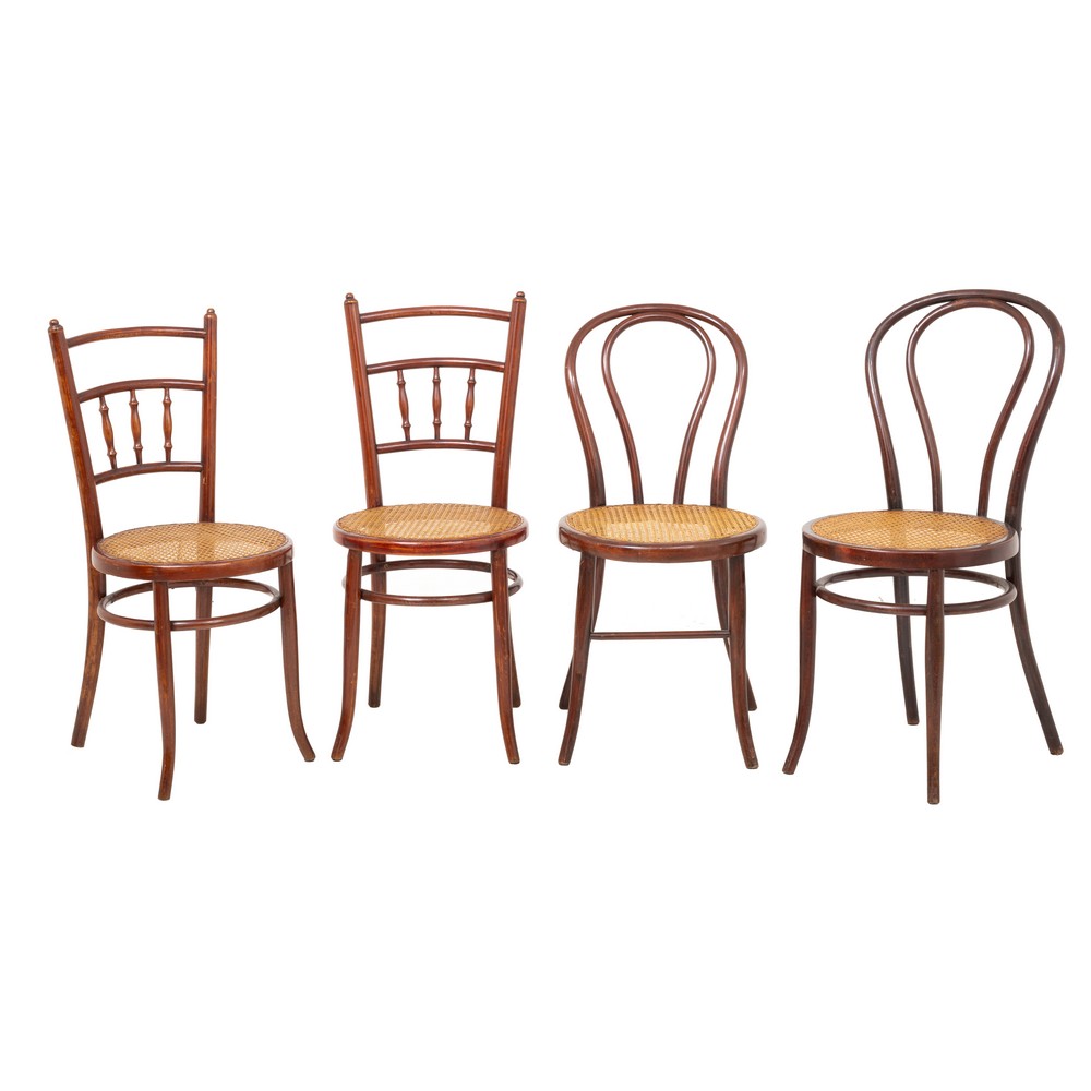 QUATTRO SEDIE tipo Thonet in legno di faggio curvato a fuoco (due tipologie).