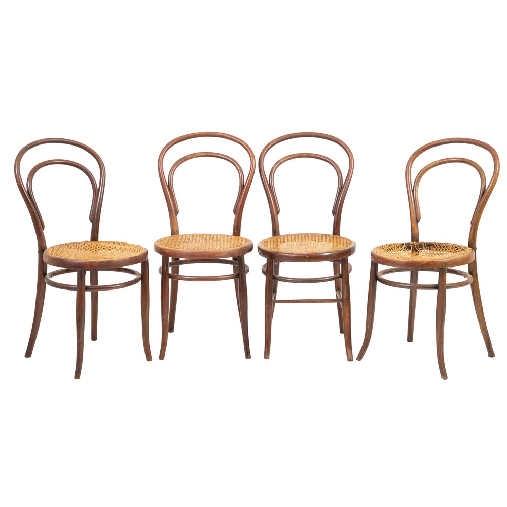 QUATTRO SEDIE tipo Thonet in legno di faggio curvato a fuoco (una seduta da rifare).