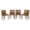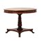 Tavolo tondo da gioco stile Impero in legno di noce con piano in pelle e quattro piccole poltrone in legno di noce con seduta e spalliera in pelle.