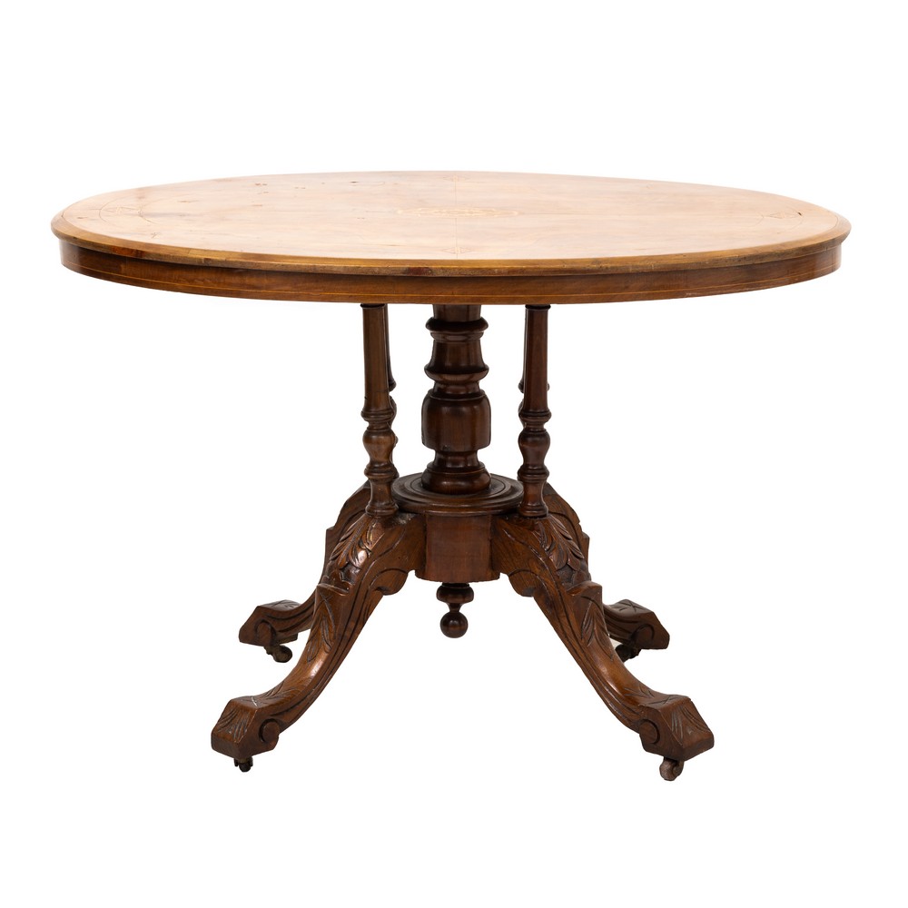 Tavolo da tè di forma ovale in legno di noce e radica di noce, periodo Vittoriano.