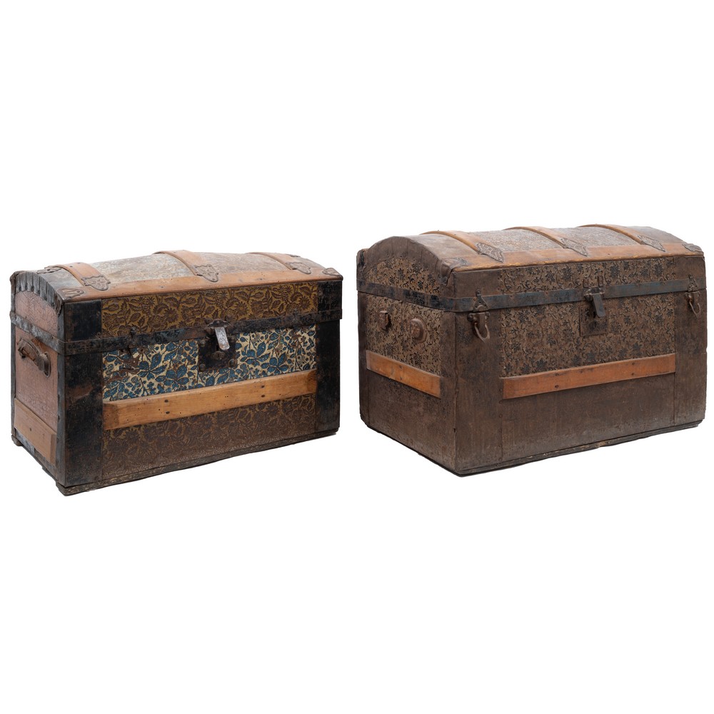 DUE CASSE DA VIAGGIO in legno con borchie in metallo.