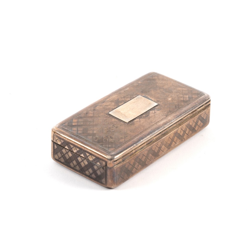 Tabacchiera in argento con decorazioni a guillochè. Argentiere Edward Smith (g. 54).