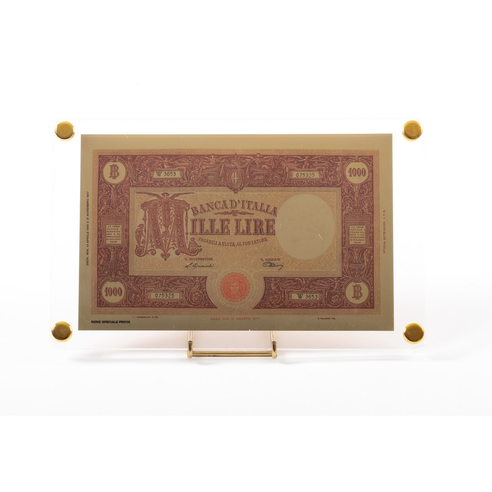 Serigrafia su biaccoppiato di polimeri e lastra "Oro antico", es. 19/99 con certificato Epica entro cofanetto.