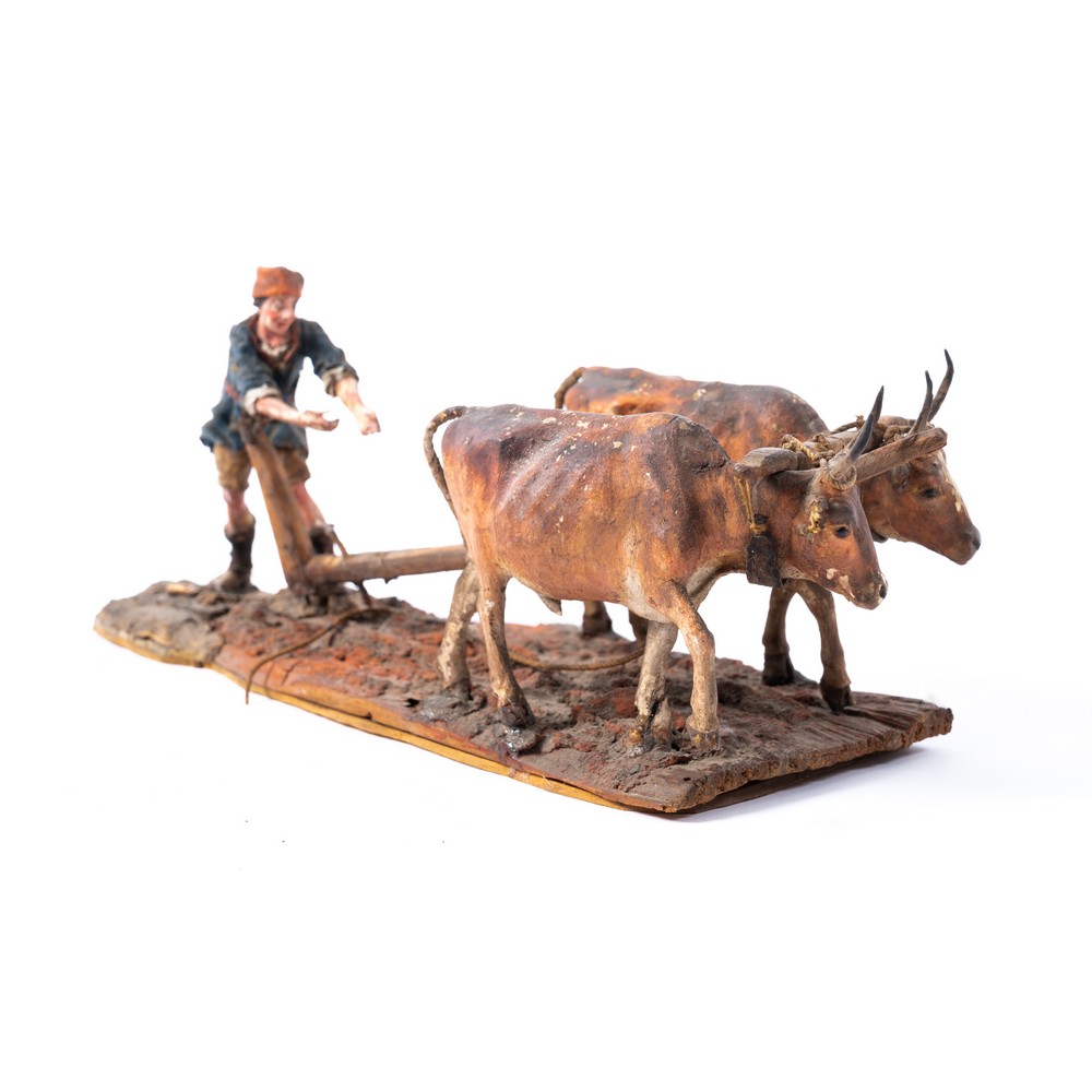 Contadino con aratro e buoi