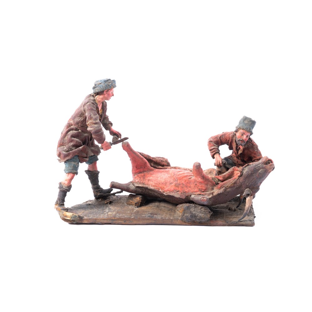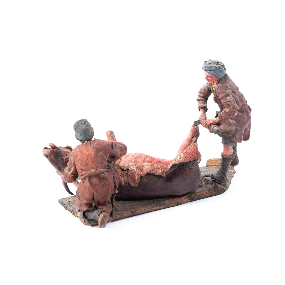 Contadini che scuoiano vitello