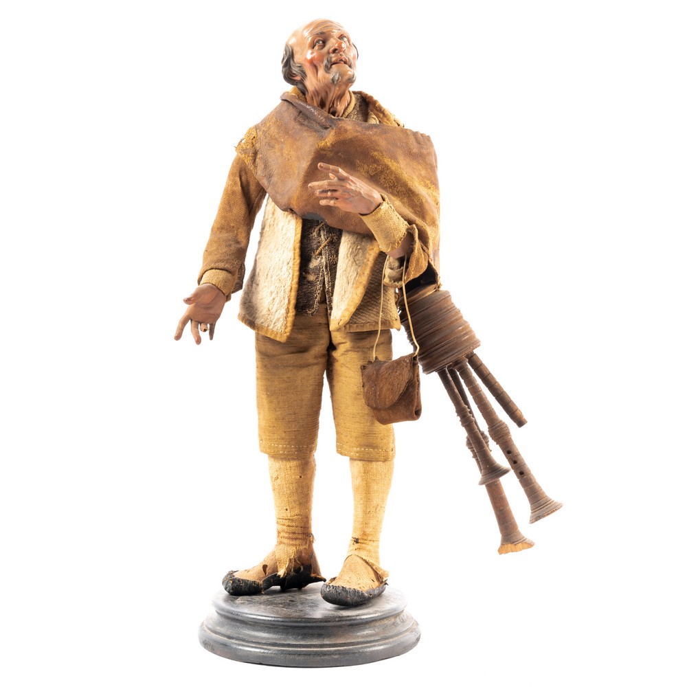 Personaggio da presepe in terracotta raffigurante "Zampognaro".