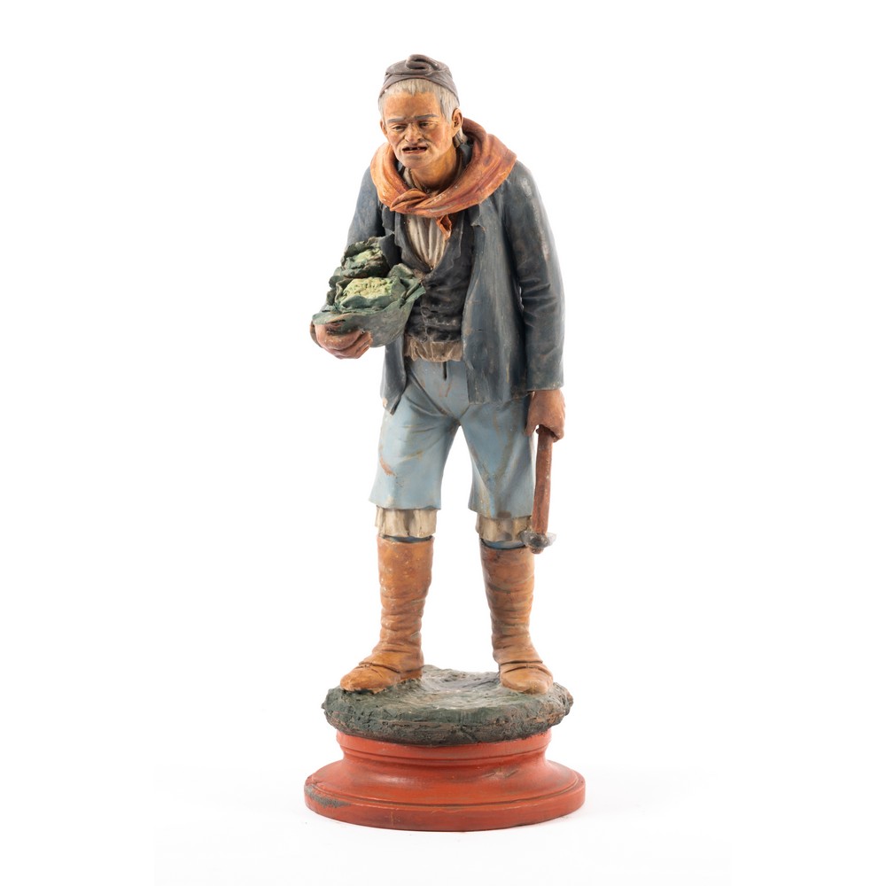 Scultura in terracotta policroma raffigurante "Contadino".