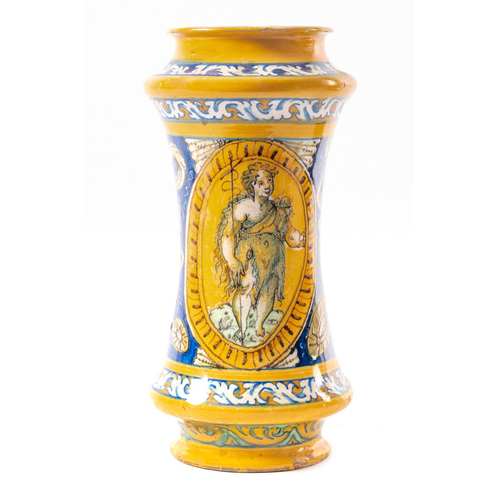 Albarello in ceramica policroma con medaglione raffigurante "San Giovanni Battista" (restauri).