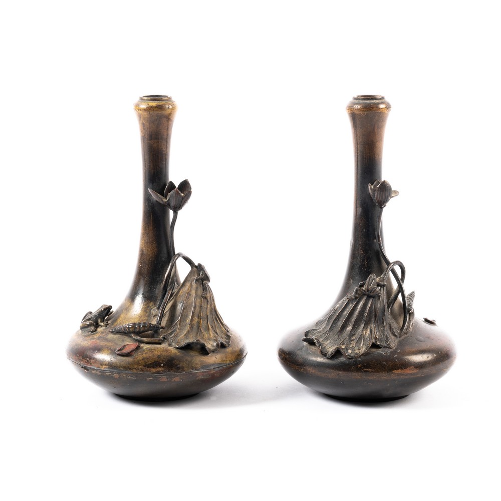 COPPIA DI PICCOLI VASI in metallo brunito.