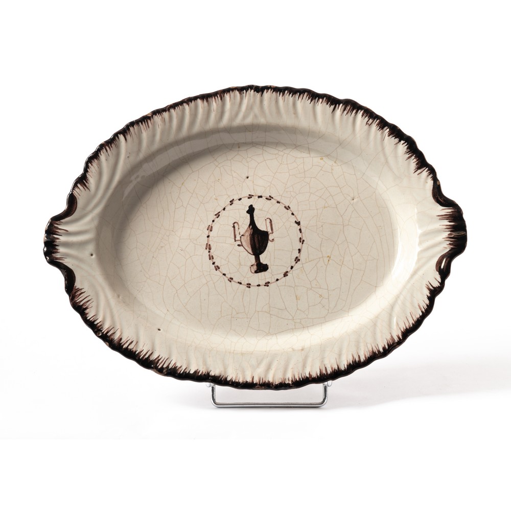 Vassoio Giustiniani in ceramica smaltata e decorata.