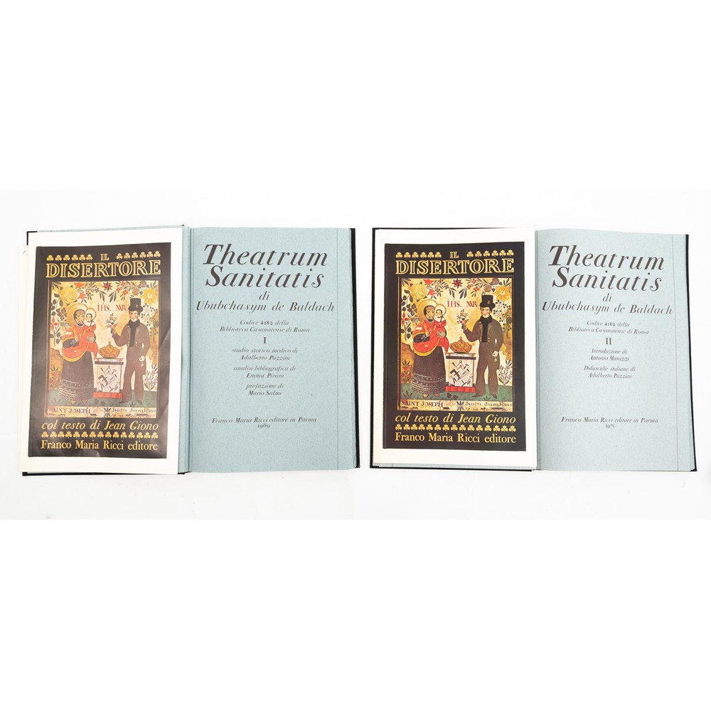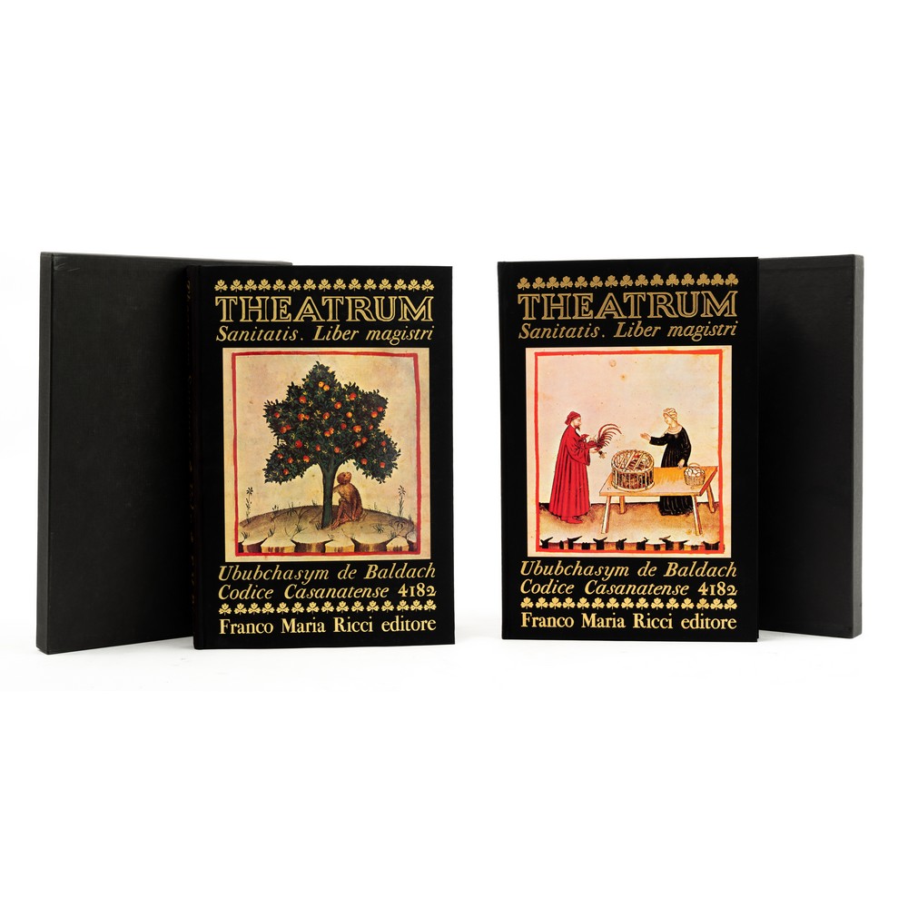 DUE VOLUMI delle edizioni FMR: UBUBCHASYM DE BALDACH. CODICE 4182 DELLA BIBLIOTECA CASANATENSE di Roma. Ed. Parma, Franco Maria Ricci, prima edizione 1970. Collana I Segni dell'Uomo. Studio storico medico e didascalie Italiane di Adalberto Pazzini. Legature editoriali in seta nera con impressioni in oro e fotoapplicazioni ai piatti. Volumi in custodie editoriali di cartone muto.