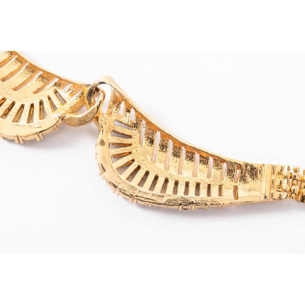 Collier in metallo dorato, maglia morbida con centrale semirigido a due ali in zirconi bianchi e neri. Marchio di produzione.