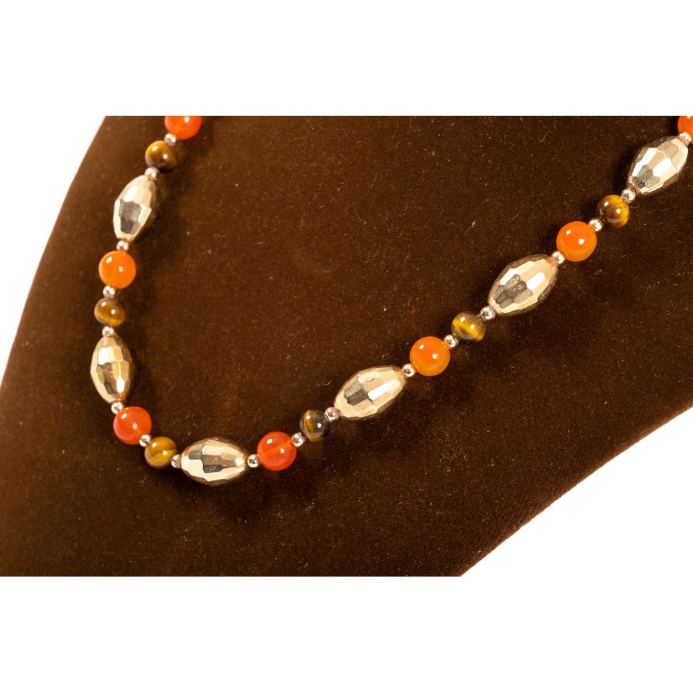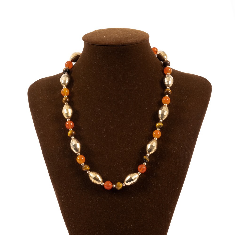 Collana a barilotti sfaccettati dorati intercalati da perline di pietre dure.