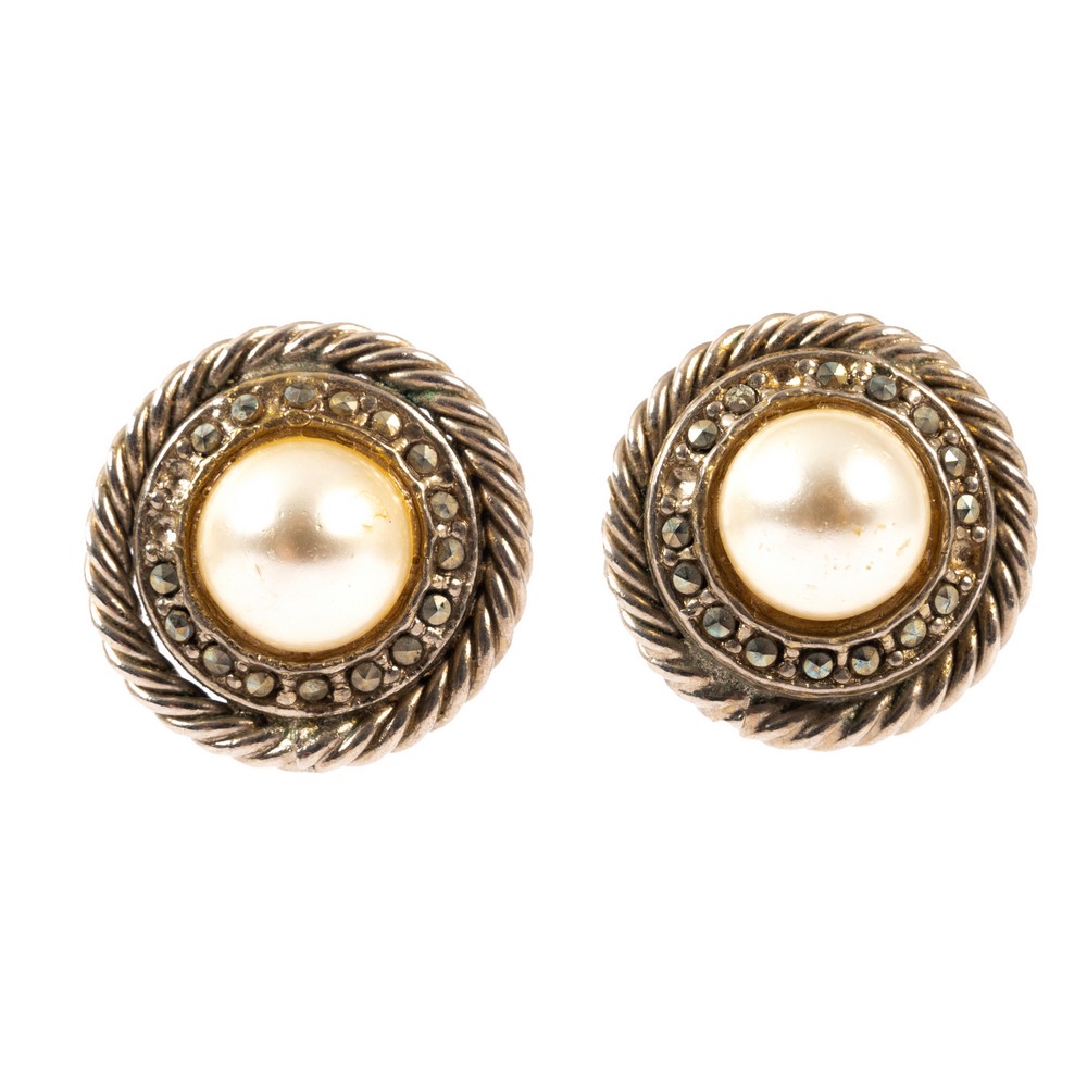 Orecchini a clips tondi con centrale di mezza perla cabochon.