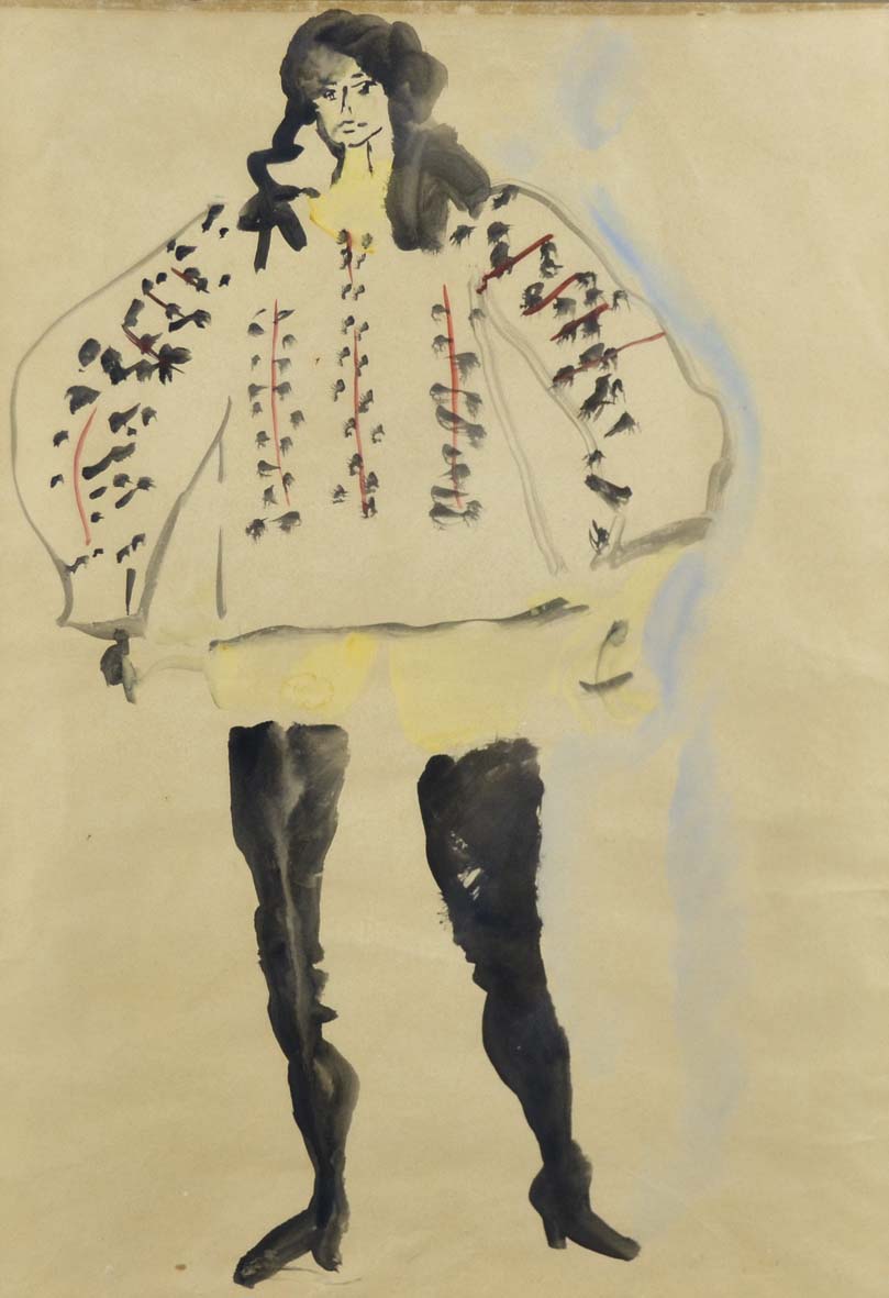 SCHWEIZER RICCARDO Mezzano 1925 - 2004 Donna in costume 1974 tecnica mista su carta 64x43 firma in basso a destra Autentica dell'Autore su foto