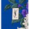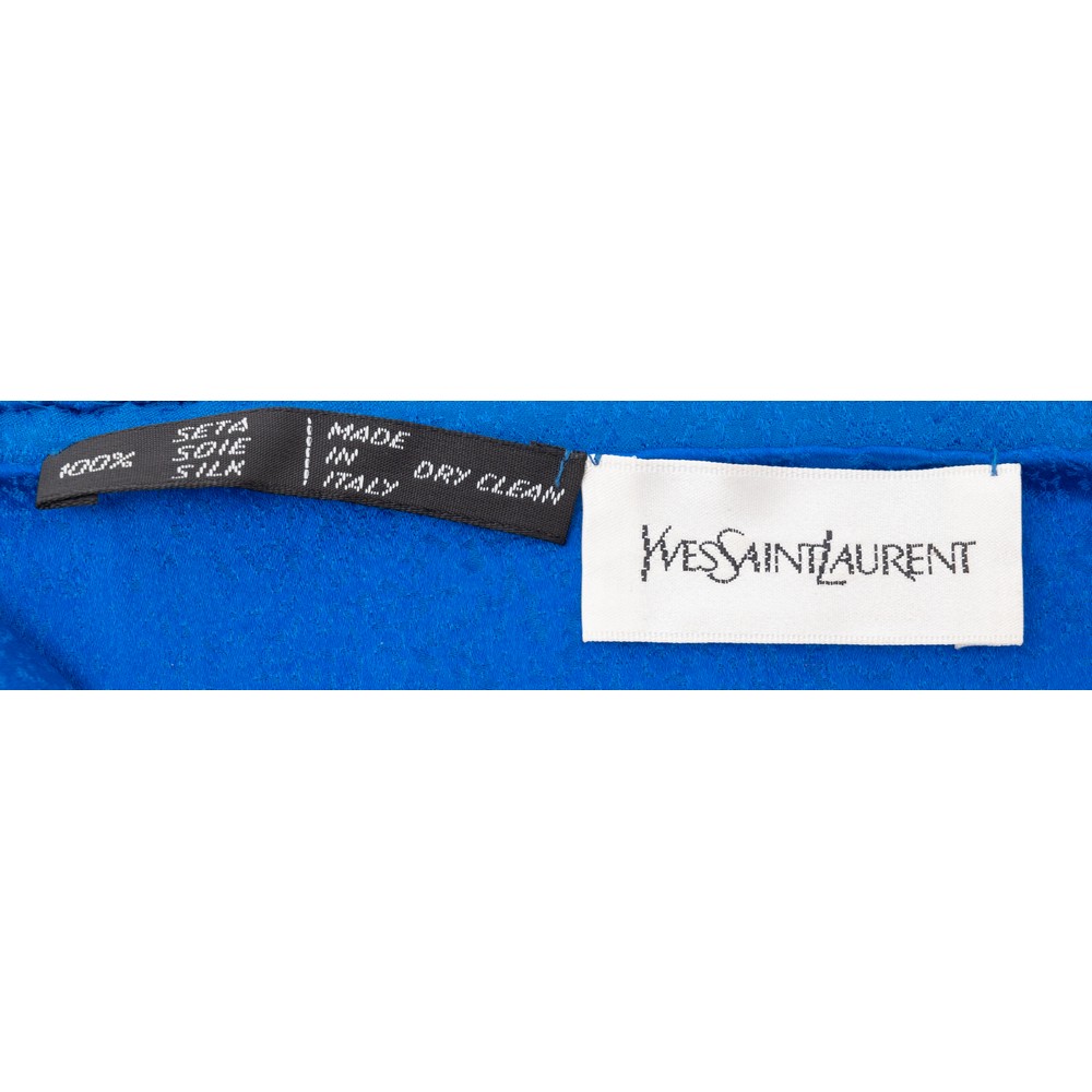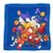 Foulard in seta fondo blu con mazzo di fiori policromi. Aloni. Marchio di produzione. Misura 90x90 cm.