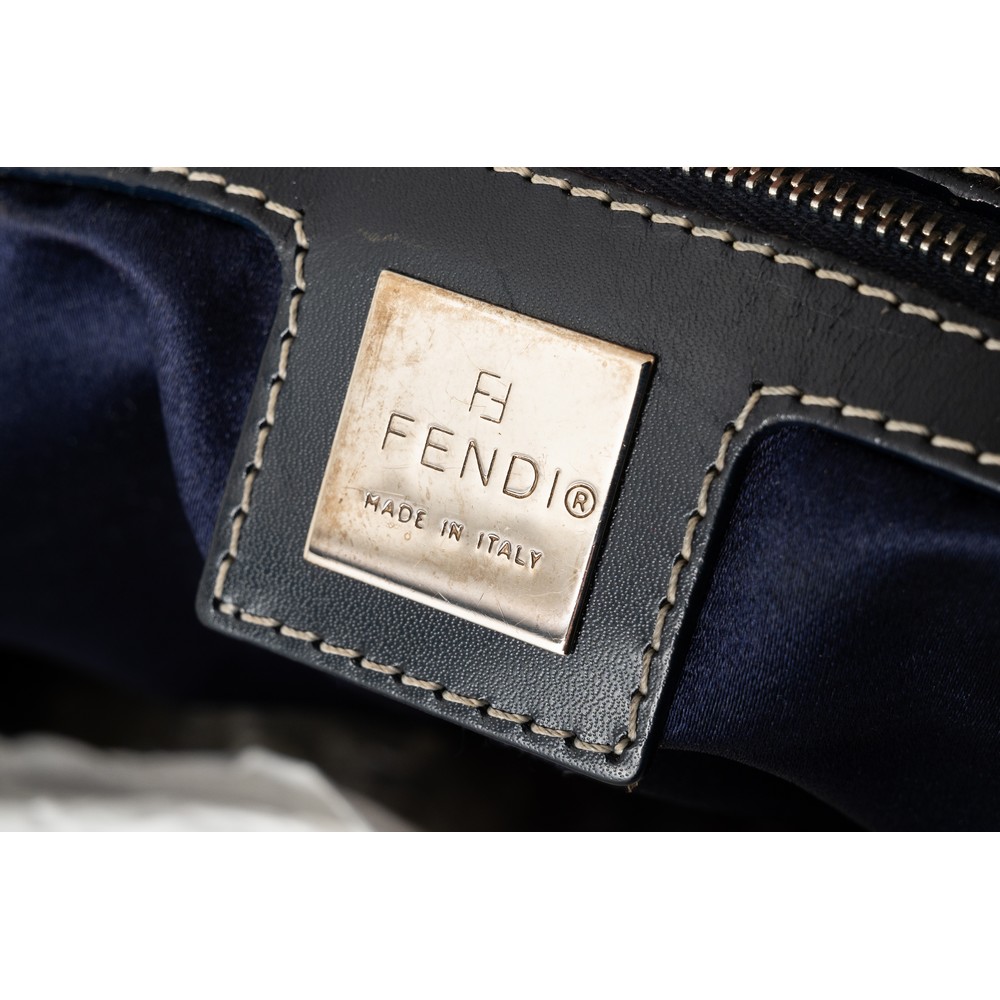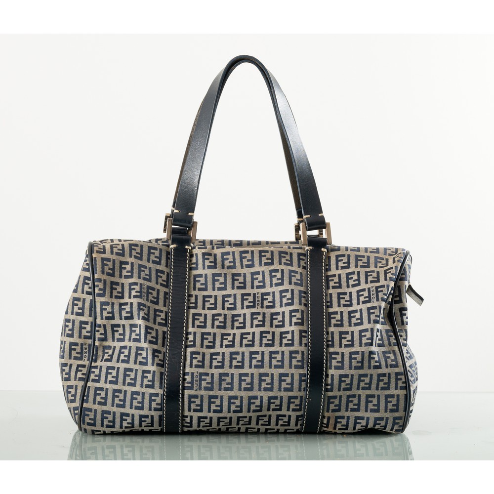 Borsa in tela monogram con due manici colore blu. Marchio di produzione. Misura 32x16x19 cm.