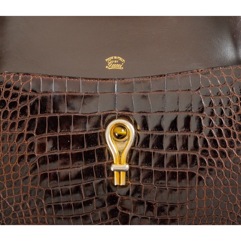 Borsa a mano Gucci in pelle marrone con manico regolabile e minuterie in metallo dorato. Marchio di produzione. Misure cm 25,5 x 8 x alt 20.