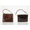 Borsa a mano in pelle marrone con piccolo manico, minuterie in metallo dorato, chiusura centrale. Misure cm 25 x 5 x alt 17,5.