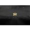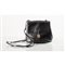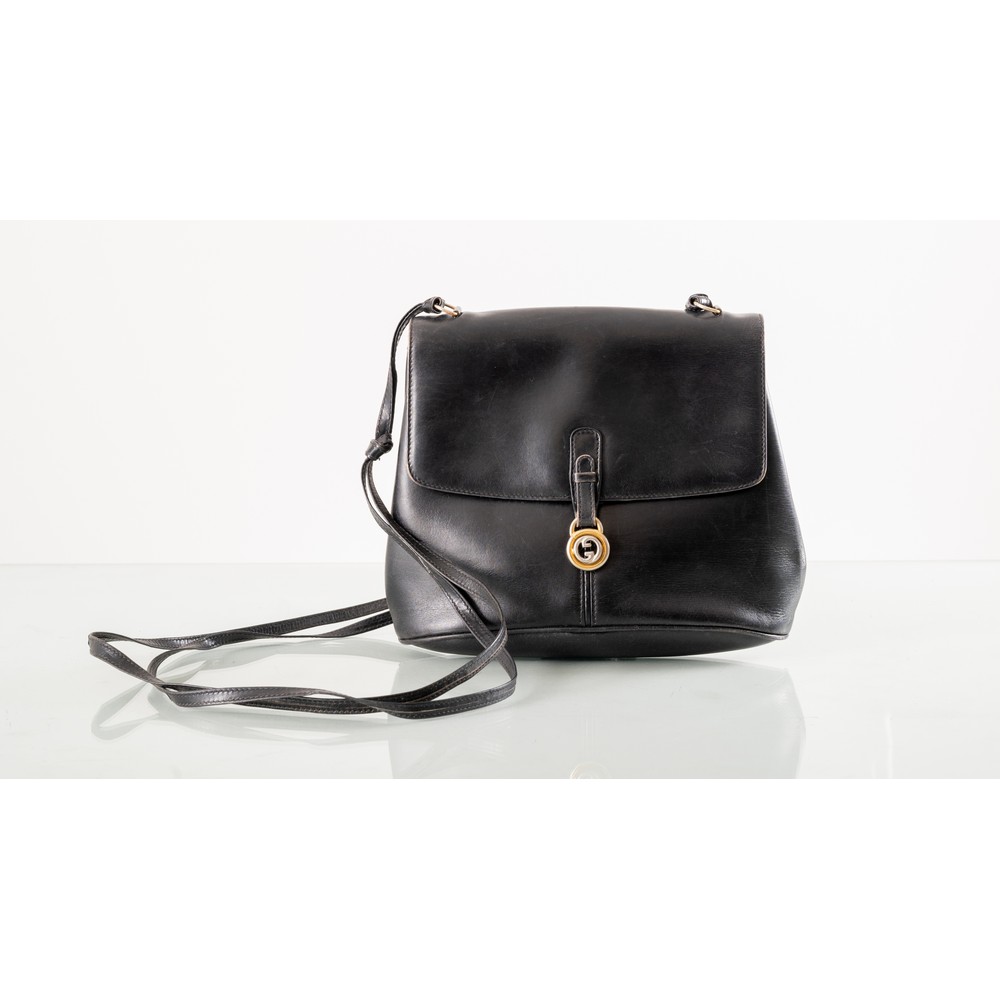 Borsa a tracolla in pelle nera con chiusura in metallo dorato e argentato con logo. Marchio di produzione. Misura 20x25 cm.