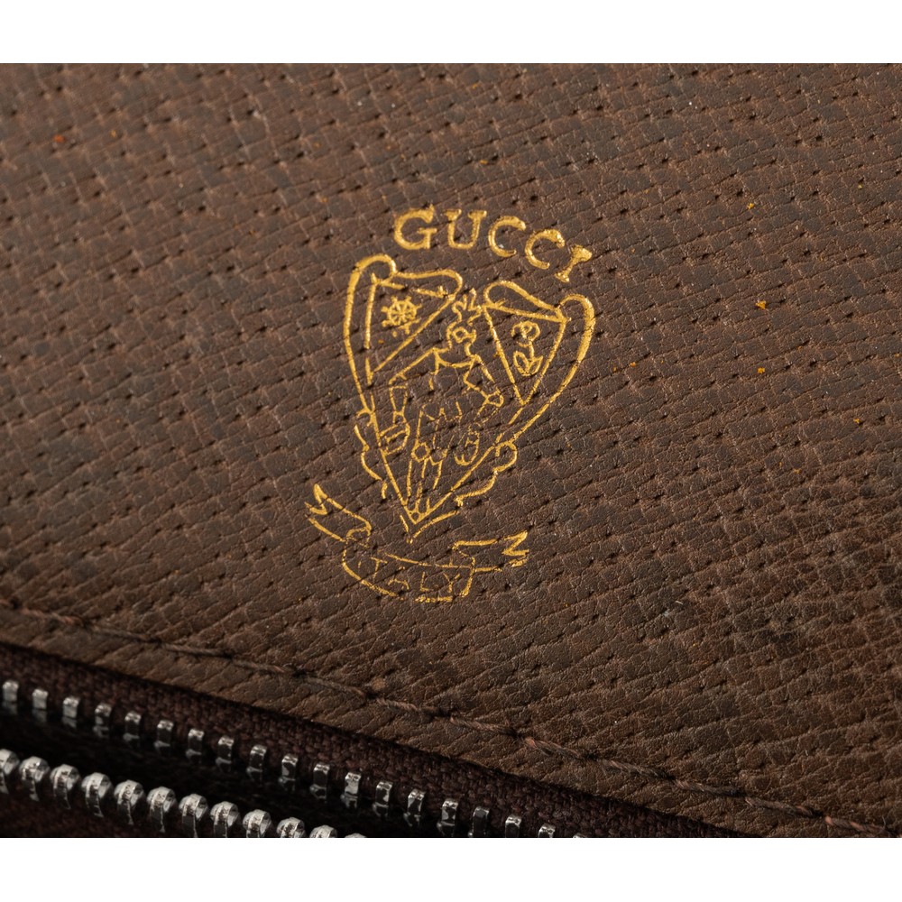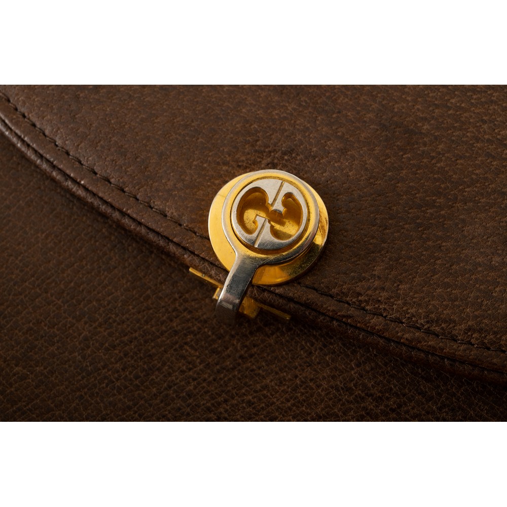 Borsa a tracolla in pelle di cammello con chiusura logata GG n metallo dorato. Marchio di produzione dorato inciso sulla pelle all’interno. Lievi graffi. Misura 23x20x06 cm.