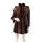 Giaccone in pelliccia di Breshvans color cioccolato bordato in pelliccia di visone con collo alla coreana, abbottonatura con cordino di pelle e nappine. Segni d’uso. Taglia M.