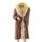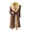 Cappotto in pelle di camoscio marrone con interno in pelliccia di lince lontrata, ampio collo. Taglia M.