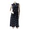 Abito in seta smanicato fondo nero con stelle bianche, abbottonatura sul davanti. Segni d’uso. Etichetta di produzione. Taglia S.