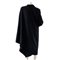 Cappotto in lana e cachemire nero con doppio taglio, metà taglio retto con collo a lancia in pelle e metà taglio mantella. Etichetta di produzione. Taglia 44.