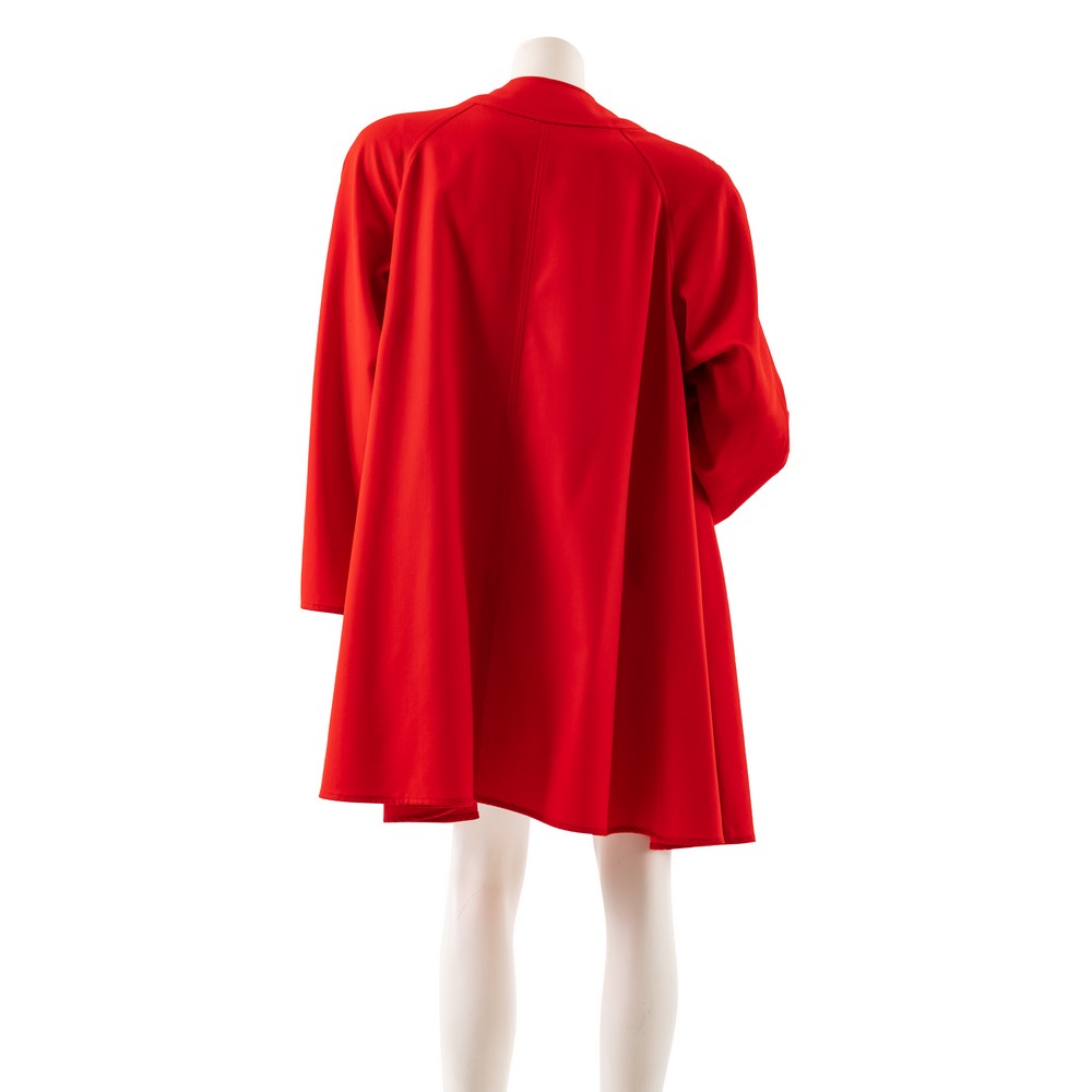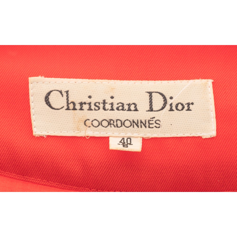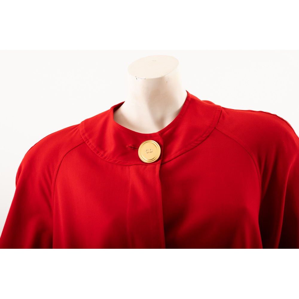 Soprabito Dior Coordonnes in cotone rosso, modello a ruota, scollatura tonda con grande bottone logato dorato. Piccolissimo buco. Etichetta di produzione. Taglia 40.