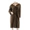 Impermeabile con cappuccio in pelle scamosciata verde bosco con interno in cotone sanforizzato beige, abbottonatura anteriore. Macchie. Taglia M.
