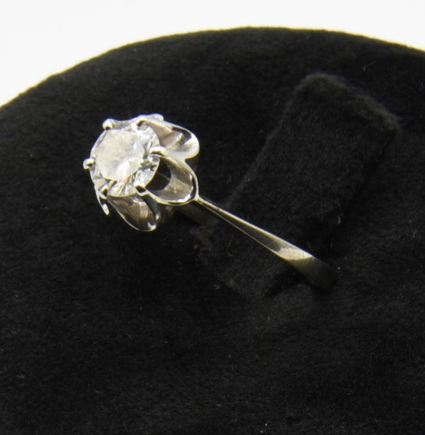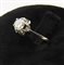 anello con diamante naturale di forma rotonda, taglio a brillante, colore I-J, purezza VS, carati ct 0,70 entro castone sagomato a corolla a sei punte