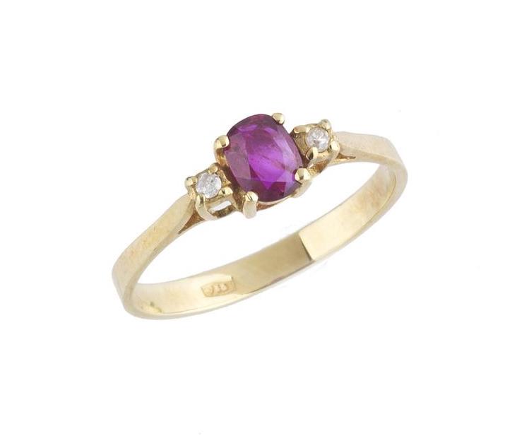 Lotto 16 | ANELLO IN ORO GIALLO, DIAMANTI E RUBINO anello con al centro un rubino ovale...