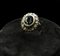 ANELLO IN ORO A BASSO TITOLO, ARGENTO, DIAMANTI E ZAFFIRO