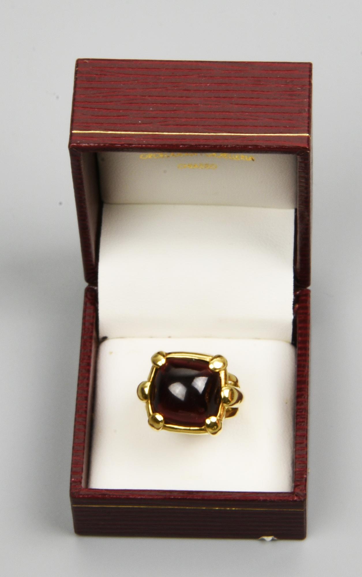 ANELLO IN ORO GIALLO E GRANATO anello con al centro un granato cabochon Oro...