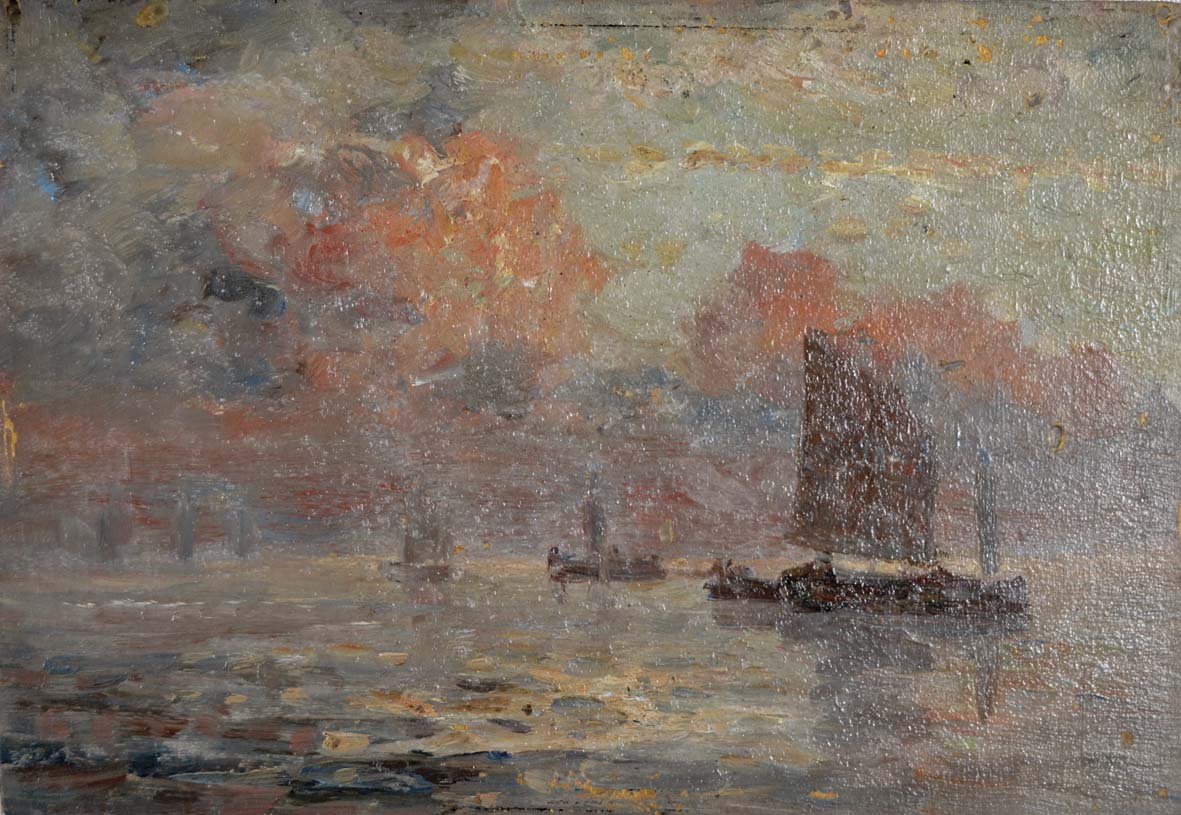 CIARDI BEPPE Venezia 1875 - Quinto di Treviso 1932 Paesaggio lagunare olio su tavola 16x22,5 firma al retro parere verbale favorevole del prof. Giovanni Granzotto