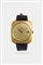 Cassa in oro satinato, di forma, con fondello a pressione. Quadrante champagne con indici geometrici applicati ed indicazione della data al 3.