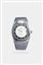 Cassa in acciaio di forma con fondello a vite. Quadrante bitonale argento-blu con indici geometrici applicati e datario al 3. Bracciale in acciaio integrato con chiusura a scomparsa.